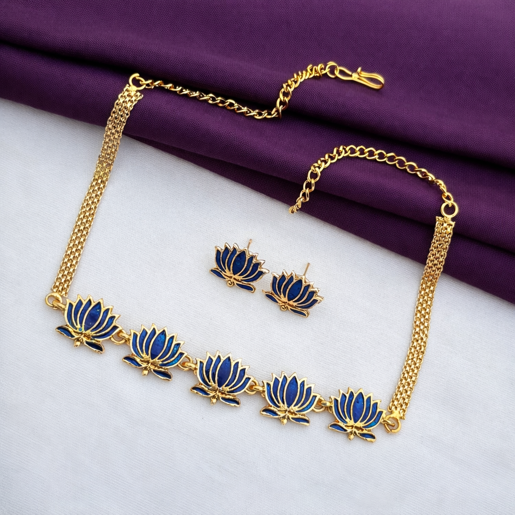 Syamanthakam Traditional Lotus Necklace SMKM04087