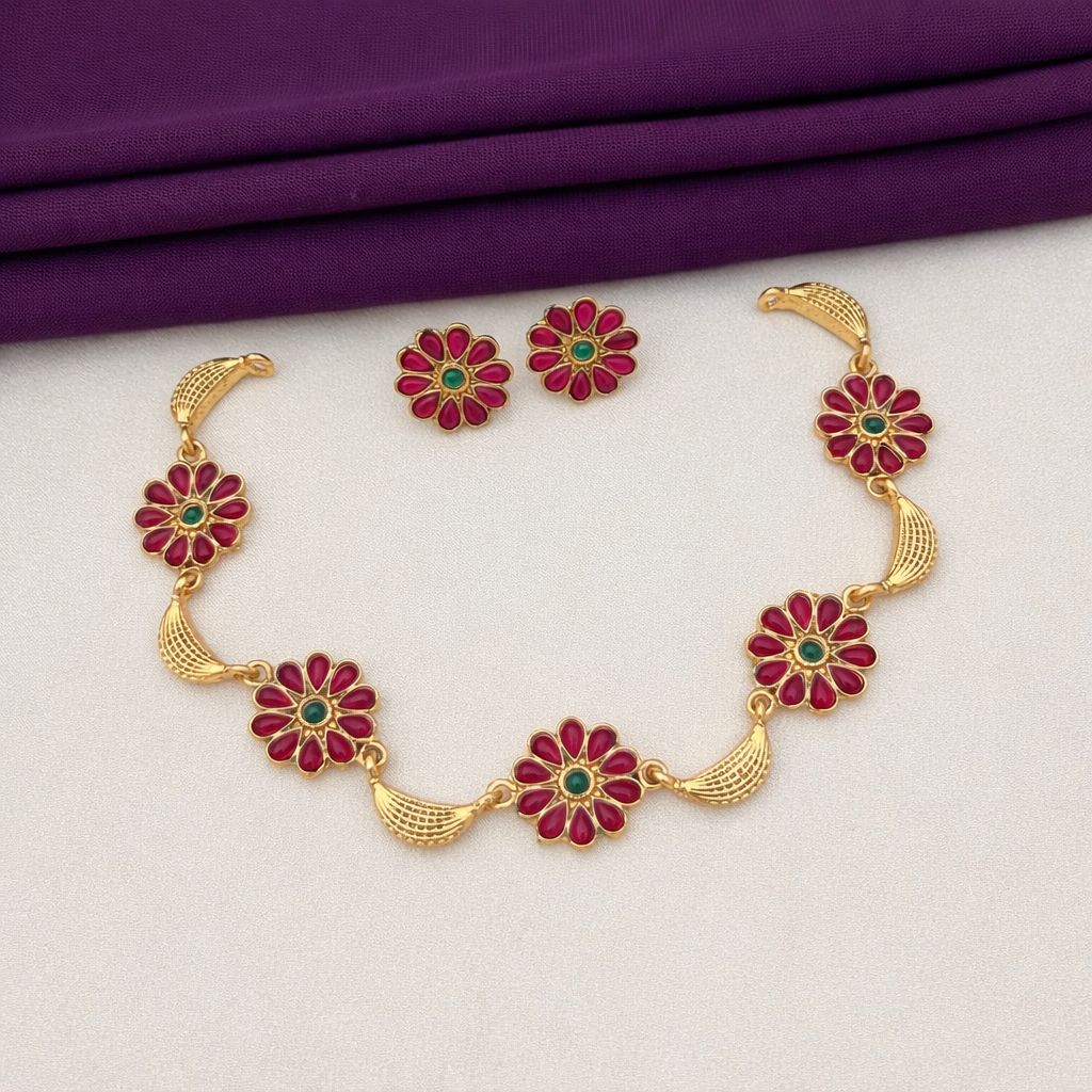 Syamanthakam Traditional Lotus Necklace SMKM04089