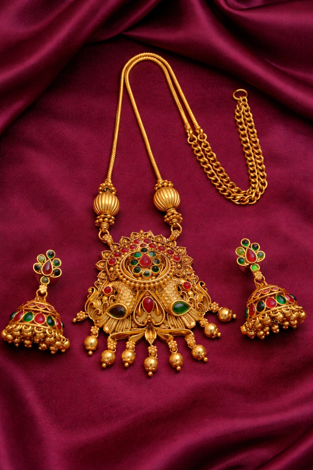 Tags: Matte Finish Temple Necklace Set, necklace, Temple Design